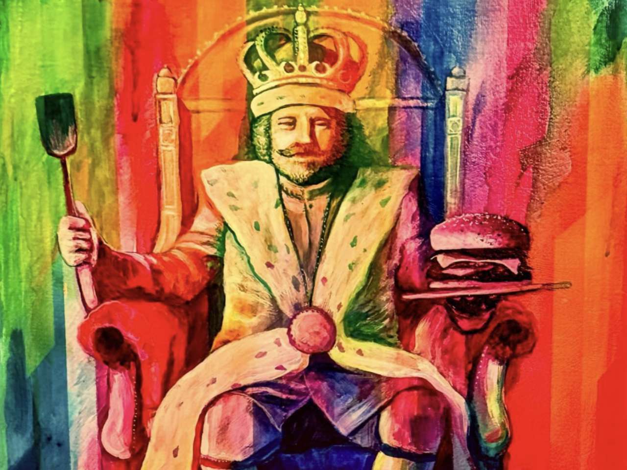The unforgettable music cooks up bold funky flavors with extravagant orchestration, dripping with tangy sauce and served with a side of existential dread. Behold! The most recognizable fast food monarch in history – The Big King! We follow his reign from humble beginnings and divine prophecies, through bloody conquests, greasy palace intrigue, and into deep-fried tyranny where Absolute Power Corrupts Absolutely FABULOUSLY!!!